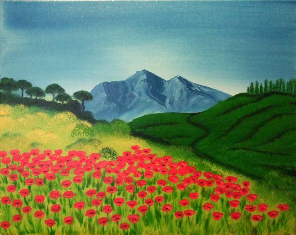 "Mohnblumenwiese vor Berg"