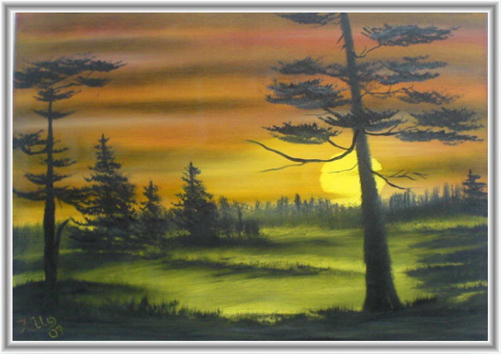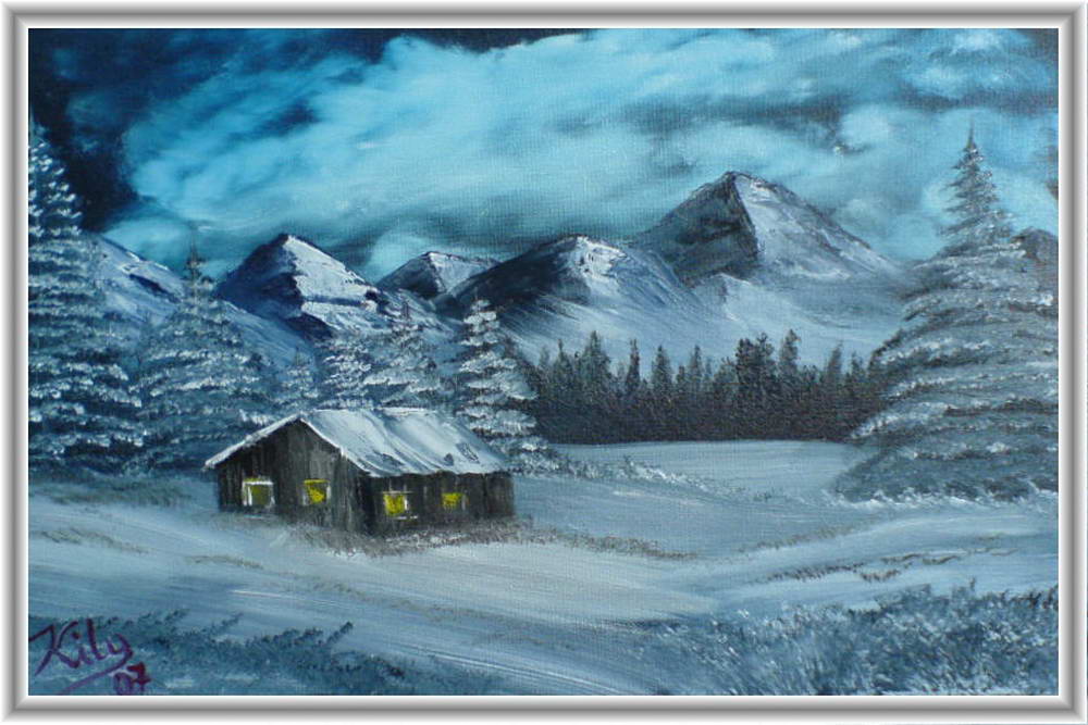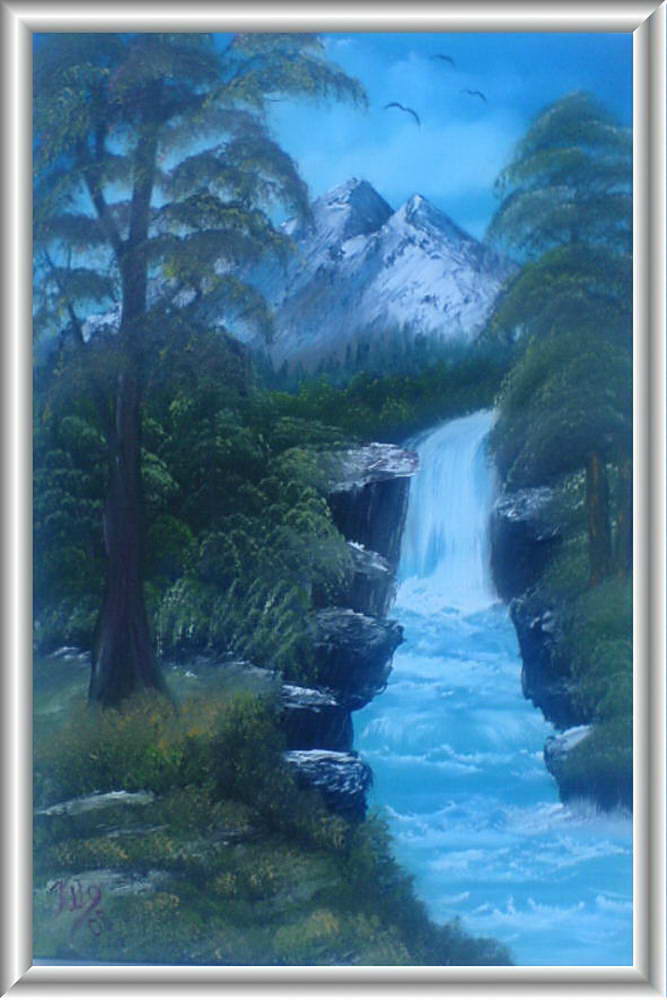ich heiße Elisabeth, bin 53 Jahre und wohne am schönen Klopeiner See in Kärnten. Nach einen Unfall und schlaflosen Nächten bin ich durch Zufall auf die Bob Ross TV Sendung aufmerksam geworden. Ich war gleich begeistert, wie er in kurzer Zeit ein schönes Bild auf die Leinwand gezaubert hat. Vor zwei Jahren hab ich es auch probiert. Ich habe ein paar Kurse besucht und mir vieles selbst beigebracht mit Hilfe von Bob Ross - Sendungen.