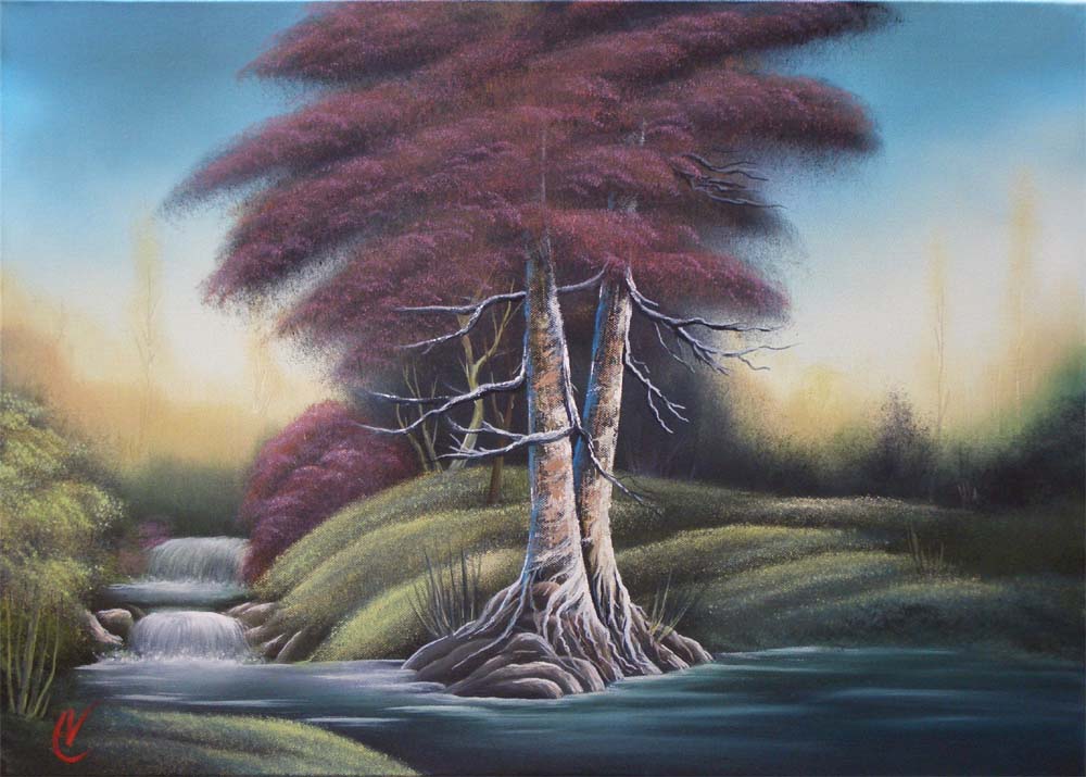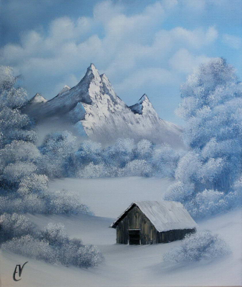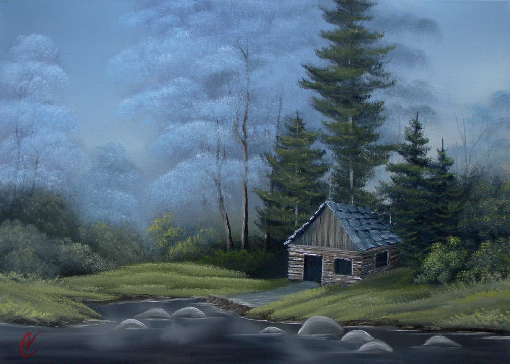 Ich schaue mir die Sendungen von Bob Ross seit Jahren an. Nachdem ich einen Malkurs besucht hatte, habe ich mir nun endlich Farben, Leinwand usw. besorgt und vor drei Wochen mit dem Malen begonnen. Es macht riesigen Spaß. Nach Bob Ross Anleitung (DVD) sind meine ersten Bilder entstanden.