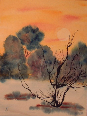 Die hier gezeigten Bilder aus den Jahren 2002 und 2003 sind mit Aquarellfarben gemalt, teilweise nass-in-nass und in der Größe 30 x 40 cm. |