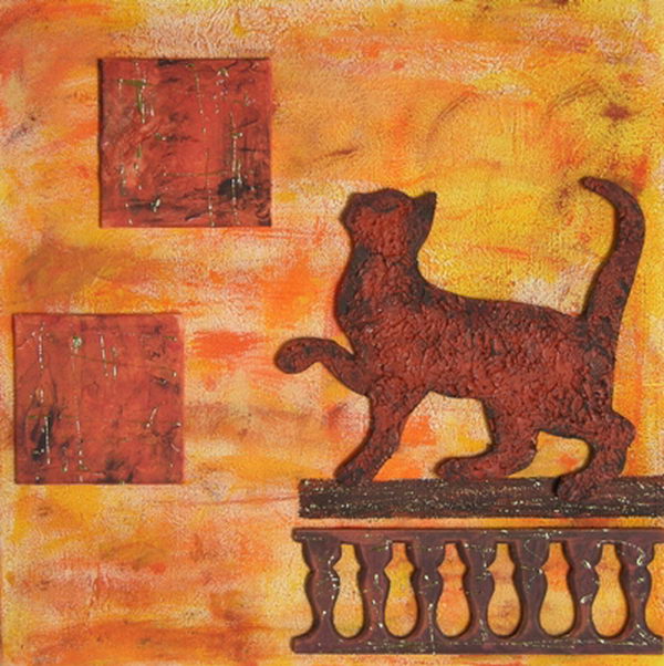 Holzdekor-Katze mit Strukturpaste und Farbe bestreichen