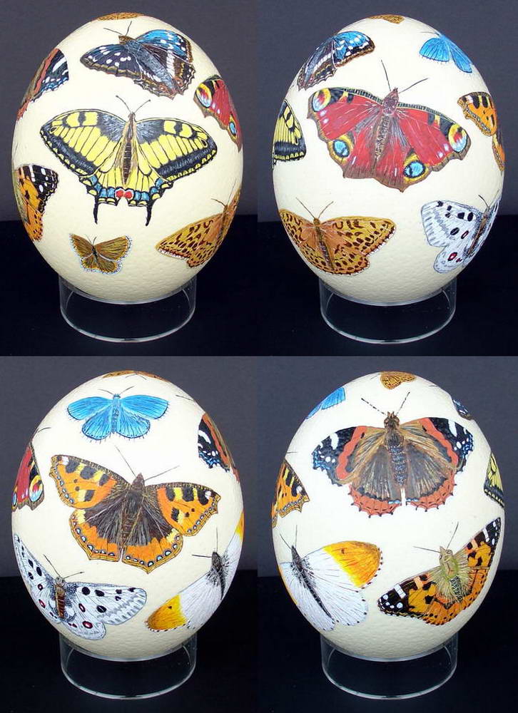 | Mit Acrylfarben bemalte Hühner- und Gänseeier: |