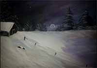 Von Beruf bin ich IT - Systemelektronikerin (,somit habe ich in der Malerei mein Gegenstück gefunden, um abzuschalten.) Schon als kleines Mädchen habe ich sehr gern mit meiner ältesten Schwester, die 13 Jahre dann älter war(!), an vielen Wochenenden oder freien Tagen gemalt. Meine Schwester hat ein gutes Talent, denke ich und mit so einem großen Altersunterschied war es ja klar, dass sie deutlich besser malen konnte als ich. So war es für mich ein Ansporn, denn ich wollte immer mindestens genauso gut malen können. Eine andere Schwester von mir konnte fabelhaft Pferde zeichnen, auch das bewunderte ich und wollte es kopieren, das schaffte ich natürlich damals auch nicht. Obwohl ich damals besser Zeichnen konnte als Malen. In der Schule hatte ich im Kunstunterricht fast immer 1en, obwohl ich mich nie sonderlich für meine Bilder begeistern konnte. Aber ich habe das Malen nie wirklich aufgegeben. Ich habe mir Literatur gekauft, da ich kein Talent besitze, und habe mir vieles über die Jahre angelesen an Techniken usw.. Auch das hat mir nicht viel gebracht, denn mir fehlt(e) eine weitere Eigenschaft zum Malen: die Geduld. Manchmal erzielte ich gute Ergebnisse, manchmal nicht, aber bekanntlich ist der Künstler mit seinem Werk ja nie zufrieden. So stieß ich dann nach langer "Hobby-Pause" im TV auf Bob Ross. Von der ersten Sendung an war ich begeistert. Da gab es also eine Methode, die für mich Ungeduldslamm wie geschaffen war. Die "perfekte" Technik für mich! Damit schaffte ich meinen persönlichen Durchbruch und konnte mich gut steigern in kurzer Zeit. Das war vor etwa drei Jahren. Aus finanziellen Gründen ist es mir nicht immer möglich regelmäßig zu malen und auch aus diesen und aus Platzgründen kann ich die Nass-in-Nass-Technik nicht in dem Sinne ausführen und muss Abstriche in der Qualität hinnehmen. Aber ich bin noch zufrieden. Ich male also nicht mit Ölfarben, sondern mit Acrylfarben. Alle Werke kann ich hier nicht mehr "veröffentlichen", denn eine Menge hat meine Familie übernommen und davon sind keine Fotos mehr vorhanden, zum Teil jedenfalls. Ich hoffe, sie gefallen euch ein wenig.