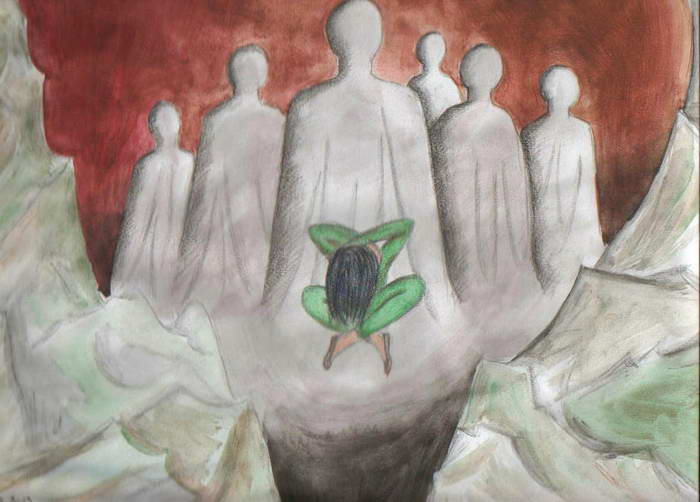 | "Schatten-Ich" Acryl Untermalung, Lasuren mit Öl 70 x 90 cm |
