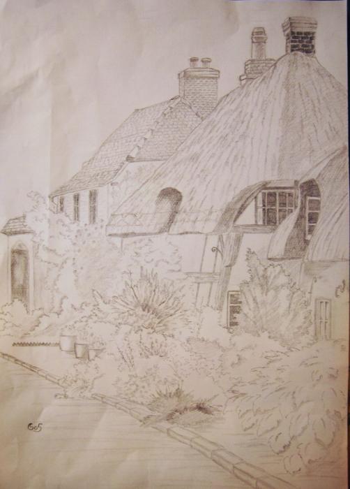 Bleistiftzeichnung DinA3 ...nach dem Cover des Buches - Englands schönste Dörfer - |