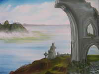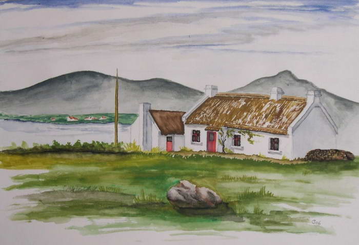 Öl auf Leinwand 60 x 40 cm Dieses Bild entstand nach meiner Bleistiftzeichnung aus dem Jahr 2003, ist ein Eigenentwurf. Es beschreibt den Wunsch vieler Irland-Emmigranten und deren Nachkommen vor ihrem Tod wieder nach Irland zurückzukehren um dort in Ruhe sterben zu können. |