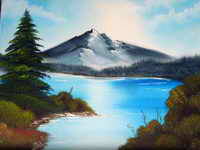 Öl auf Leinwand 60 x 60 cm nach BR, zum Üben von Bergen und Wasser. |