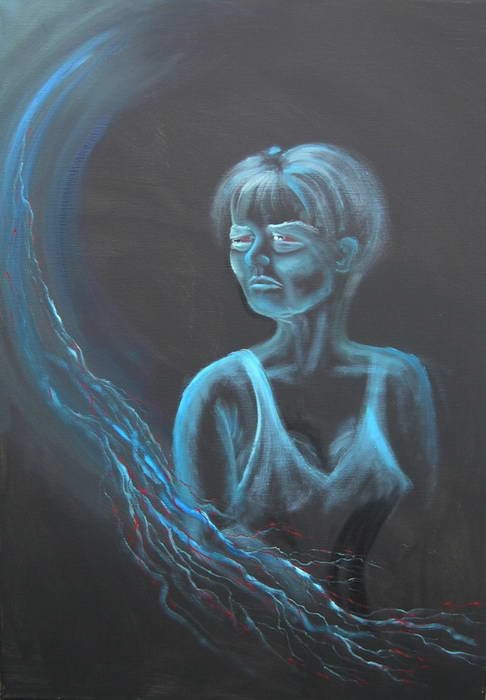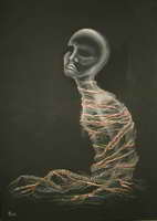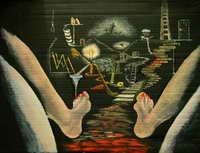 Öl auf Strukturpapier 60 x 40 cm Dieses Bild ist sicherlich technisch nicht gerade besonders, bringt aber vielleicht gut rüber, was ich meine. Ich habe es gestern beim Fernsehen gemalt, als ich mich bei einigen etwas furchterregenden Szenen daran erinnerte, wie ich mich als kleines Kind nachts vor dem Einschlafen oft gefühlt habe. |