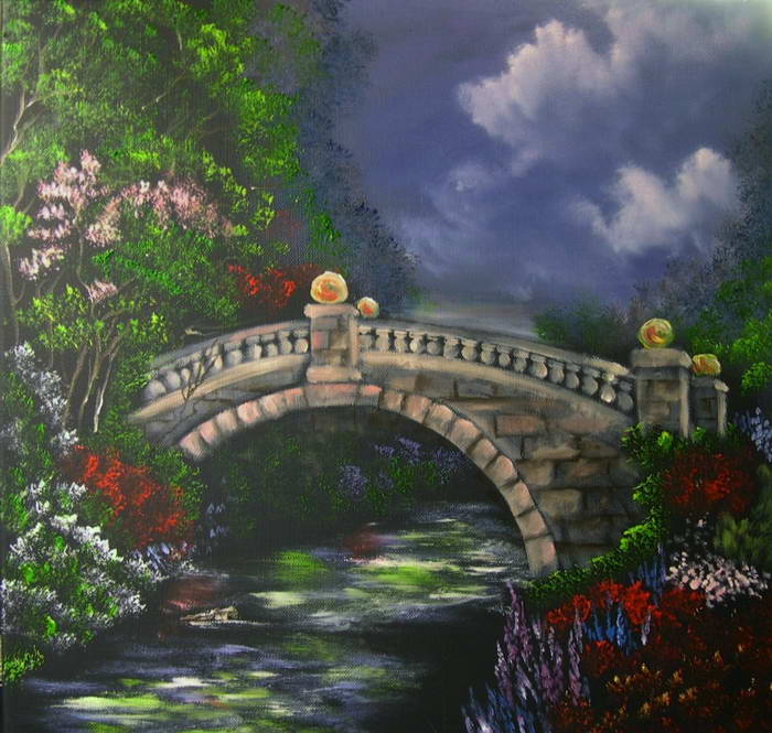 Öl auf Leinwand 40 x 40 cm Nach einem Motiv von Thomas Kinkade. |