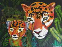 | Mein neues Bild " Mutter mit Jaguarbaby" ist ein Bob Ross Projekt mit Vorlage. Ich habe das Bild auf Leinwand 45 x 60 cm mit Öl-Landschaftsfarben gemalt. Trotz Vorlage habe ich 7 Tage gebraucht. (viele Versuche bei den Augen) |