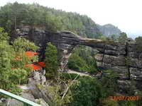 Mit dem Auto in die Böhmische Schweiz (Tschechien) ist es von uns ca 60 km. Vom Parkplatz so um die 18 km zu Fuß zum Preibischtor. War schon beeindruckend damals, hoch oben am Felsen lang!