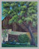 ... ein Gartenfoto das mich in meiner ersten BR Phase erwischte und sofort als Ölbild umgesetzt wurde.
