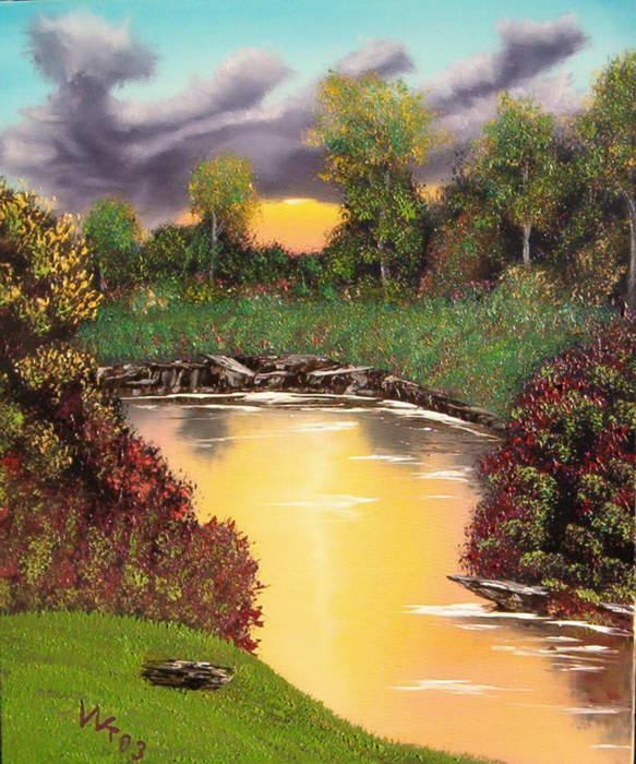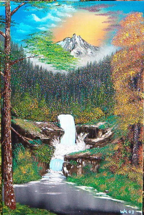 Hallo ich bin der Werner, einige nennen mich auch Brösel.Bin Baujahr 54. 2001 habe ich Bob Ross das erste mal auf BR-Alpha gesehen und das wurde dann zur Tagesaufgabe.Im März 2003 habe ich angefangen zu Malen.Witzigerweise habe ich in Acryl angefangen zu Malen und mir dabei einen mächtig abgebrochen.Aber es sollte keiner mehr sagen das ginge nicht.Bis Ende 2002 hatte ich über Hundert Motive gemalt.Aber erst beim malen wurde mir bewusst das er in Öl (Mit seinen Speziellen Farben) malt. Anfang Januar übte ich schon mal mit Reevers Ölfarben,aber immer noch auf Holz. Der Rest über mich und meine Bilder steht auf meinen Webseiten: